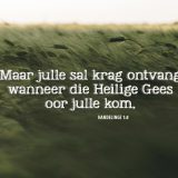 Hoe heerlik om te weet dat die Vader, deur sy kragtige werking die Heilige Gees stuur om geloof in ons aan te wakker. Kan daar ’n beter wete as dit wees? Ons het nie nodig om hierdie skild self te maak nie. Die Koning self gee vir ons hierdie skild. Hy gee vir ons geloof in Hom.