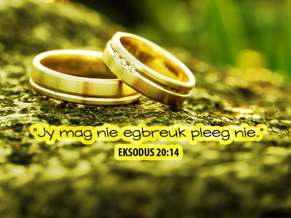 As jy ongetroud is kan jy maklik verby hierdie gebod kyk, maar dit is nie net belangrik vir mense wat alreeds getroud is nie. Dit is op alle mense van toepassing sou hulle nou enkellopend of getroud wees. Dit praat nie net oor egskeiding nie, maar enigiets wat afbreek maak aan die huwelik wat die Here ingestel het tussen man en vrou.