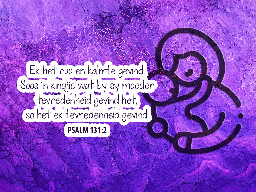 Gebruik dit in jou stiltetyd, skryf dit uit, memoriseer dit. Laat die beelde van die Psalm jou gedagtes vorm – sien jouself as ’n kind teen God se hart. Hierdie geestelike oefening van vertroue en rus is nie passief nie. Dit is aktief. Dit vra ’n keuse om te vertrou, om jou hart nederig voor God te buig, en nie alles self te probeer oplos nie.