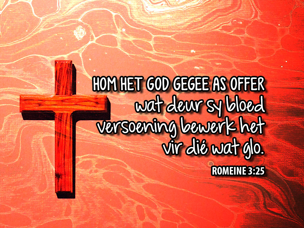 God openbaar sy geregtigheid nie deur bloot te straf nie, maar deur te red. Hy stel die Here Jesus Christus voor as ’n versoening deur sy bloed (Romeine 3:25). Die kruis is dus nie ’n tragiese ongeluk in die geskiedenis nie, maar die daad van God self.