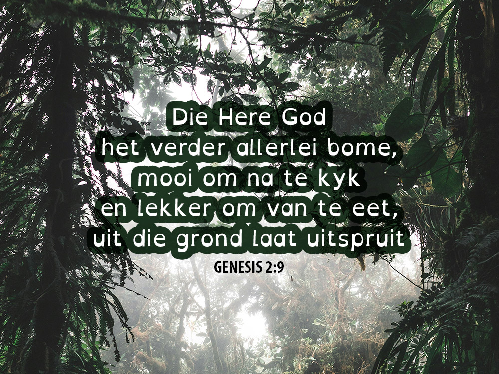 In Genesis 2 lees ons hoe die Here bome skep, en so ’n plek van gemeenskap maak vir Hom en die mens. Deur sonde word dit verbreek, maar lees hier hoe Jesus dit weer kom regmaak.