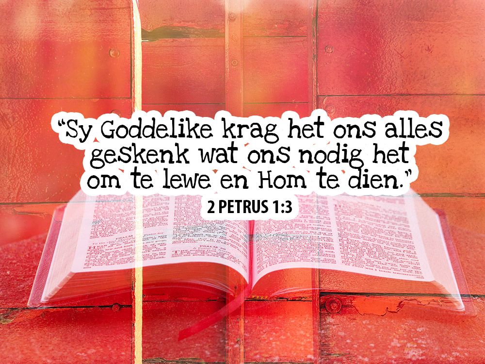 Immers, Sy goddelike krag het ons alles geskenk wat tot die lewe en godsvrug dien, deur die kennis van Hom wat ons geroep het deur Sy heerlikheid en deug…
