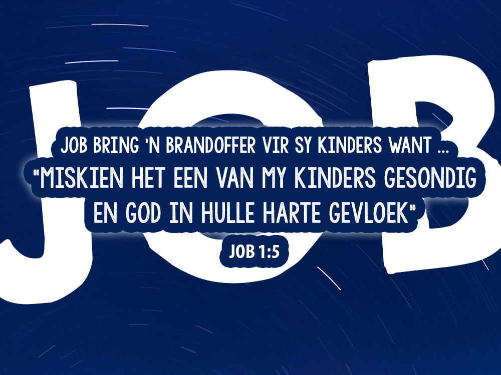 Job het vir elkeen van sy kinders ’n brandoffer gebring want Job het gedink: “Miskien het een van my kinders gesondig en God in hulle harte gevloek” (Job 1:5). Ons lees dat Job dit élke keer gedoen het. Ná elke fees het hy ’n offer gebring – nét vir ingeval.
