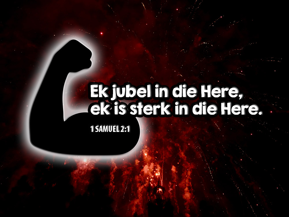 Nadat sy Samuel gespeen het, het sy met hom opgegaan na die tabernakel. By die tabernakel, gereed om Samuel aan die Here te gee, bid sy hierdie gebed. Hanna het gebid en gesê: “My hart juig in die HERE, ek is sterk in die Here” (1 Samuel 1:1). Letterlik staan daar: “my horing is hoog in die HERE”.